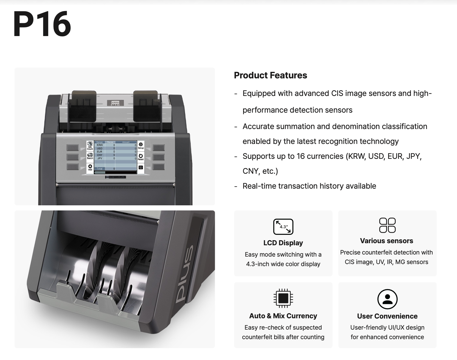 PLUS Co., Ltd. is a specialized South Korean manufacturer dedicated to the development of advanced cash handling technology since 1978. Distinct from the Japanese stationery company of the same name, PLUS Korea is an industry leader in engineering high-precision banknote counters, currency discriminators, and counterfeit detection systems for the global financial sector.
