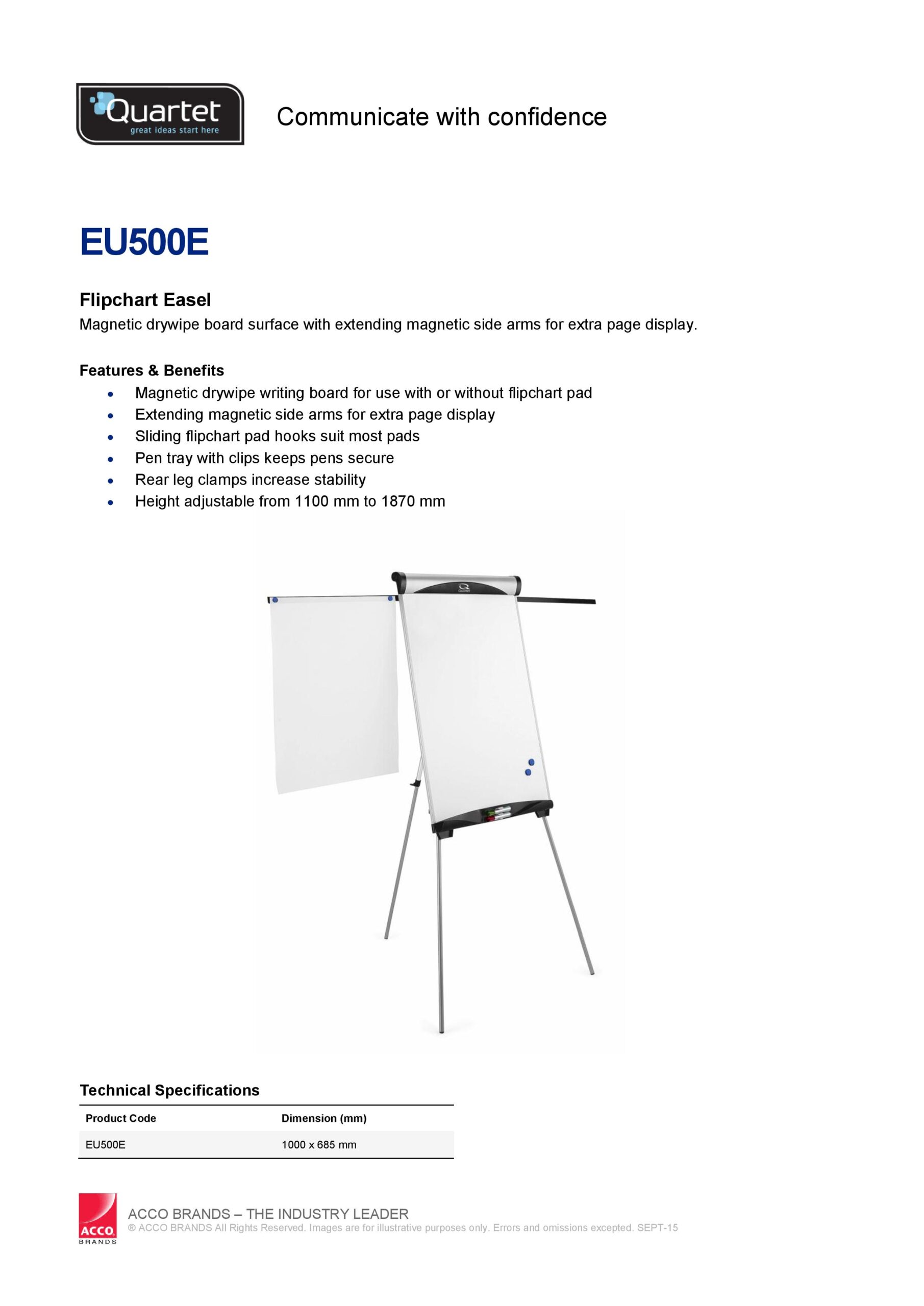 Model: QUARTET Flipchart Easel EU500E