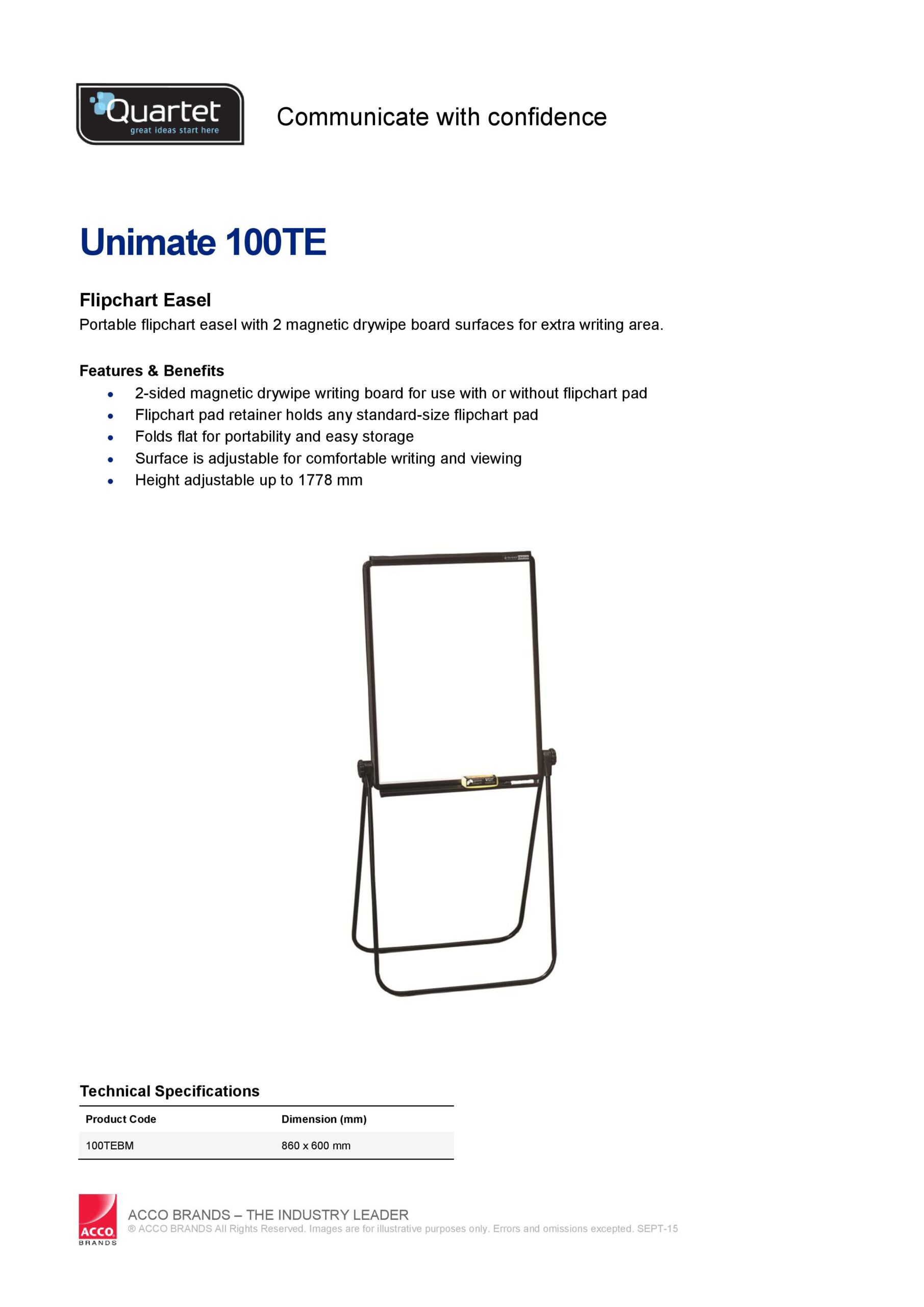 Model: QUARTET Unimate 100TE Flipchart Easel
