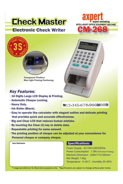 Model: Axpert CM-268 Cheque Writer