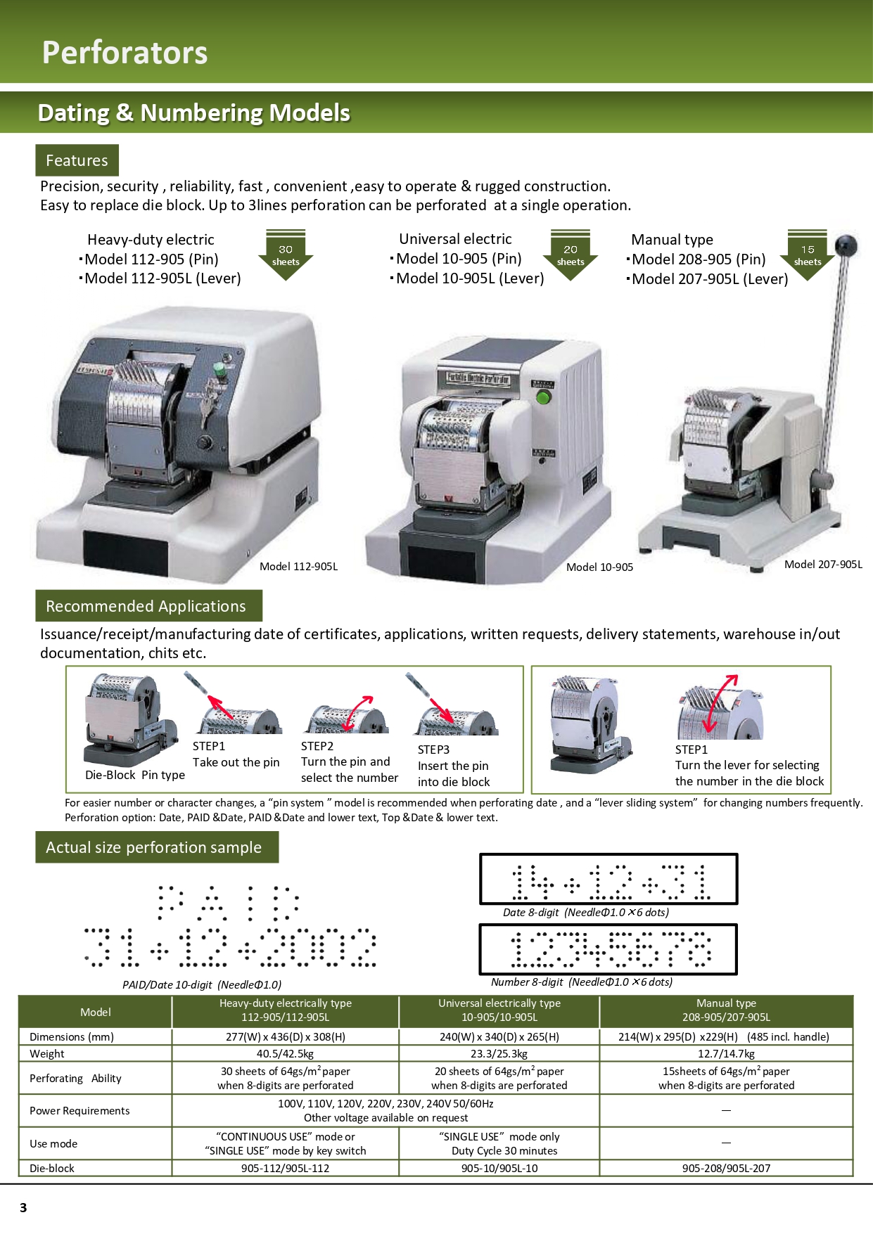 Manual/ Double Line / 10-digit / Pin Selection perforator