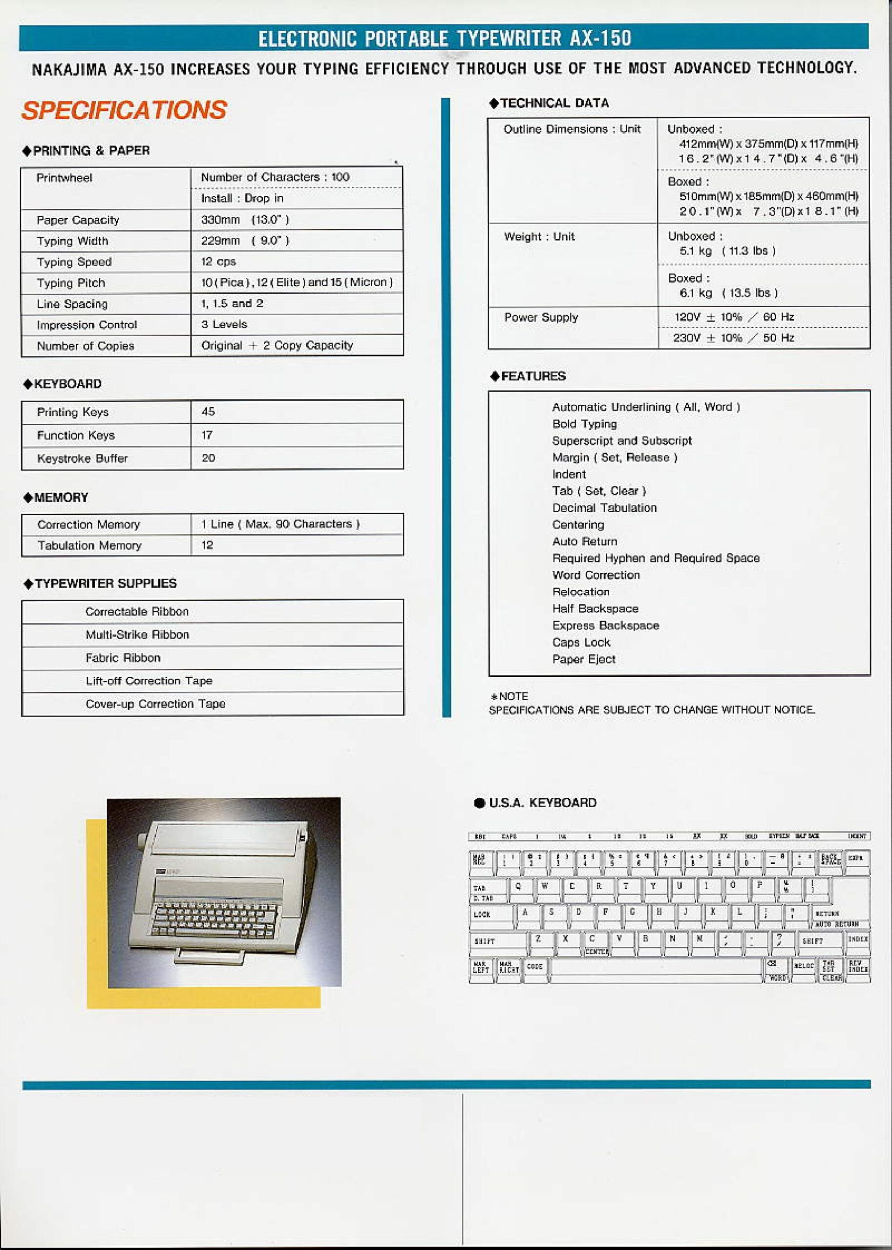 Nakajima AX150 increases your typing efficiency through use of the most advanced technology.