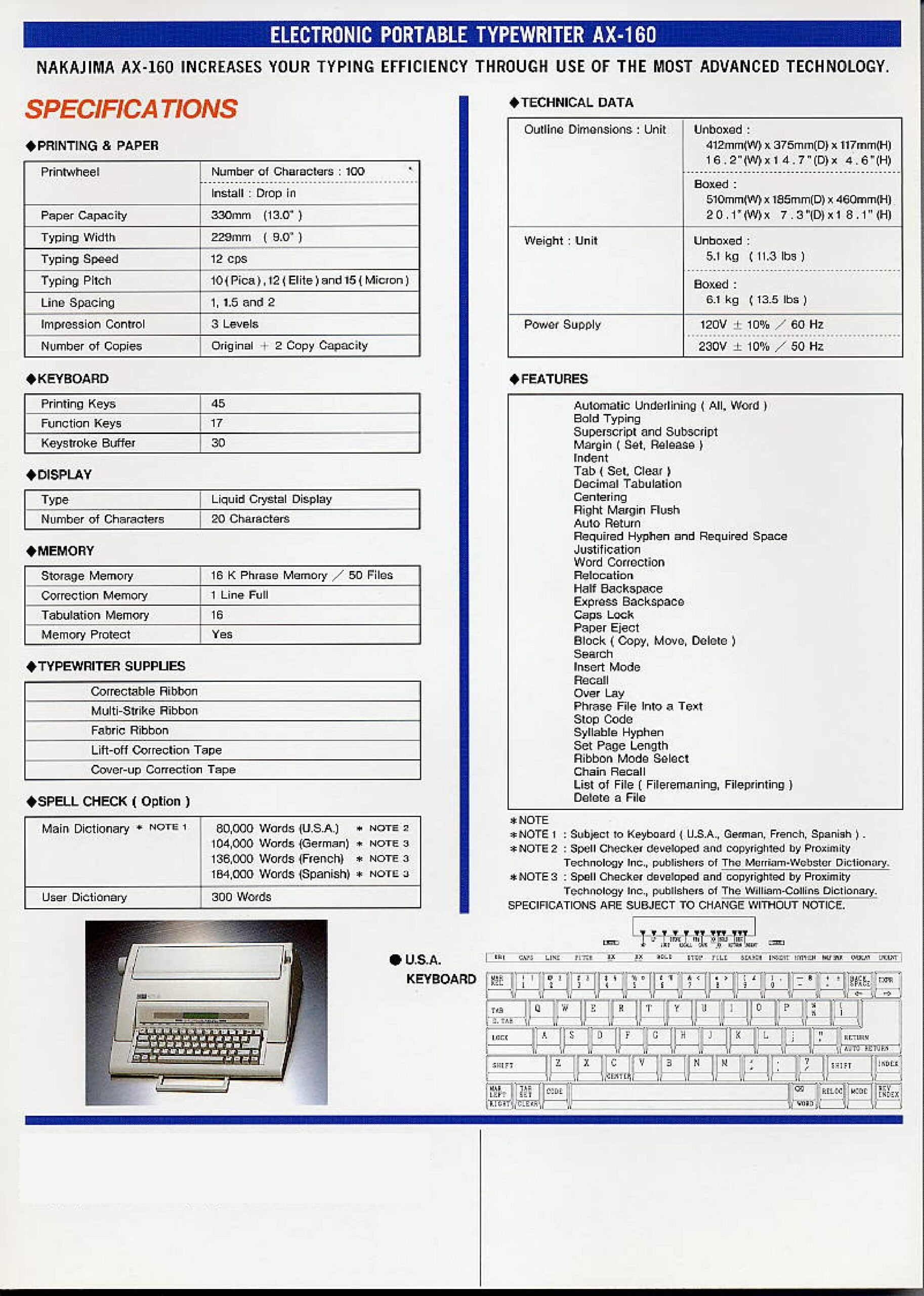 Model: Nakajima AX-160 Typewriter with Display Screen